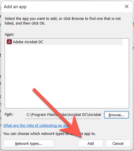 Add Adobe Acrobat As Firewall Exception