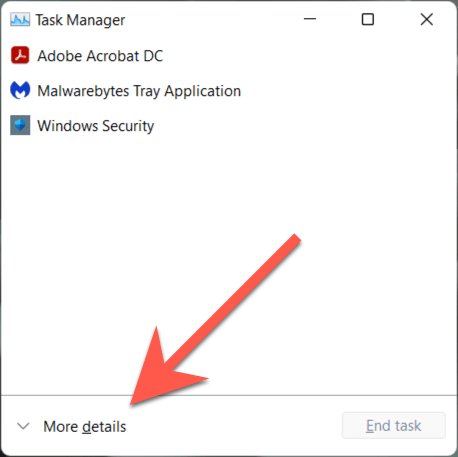 - Select More details to expand the default Task Manager view.