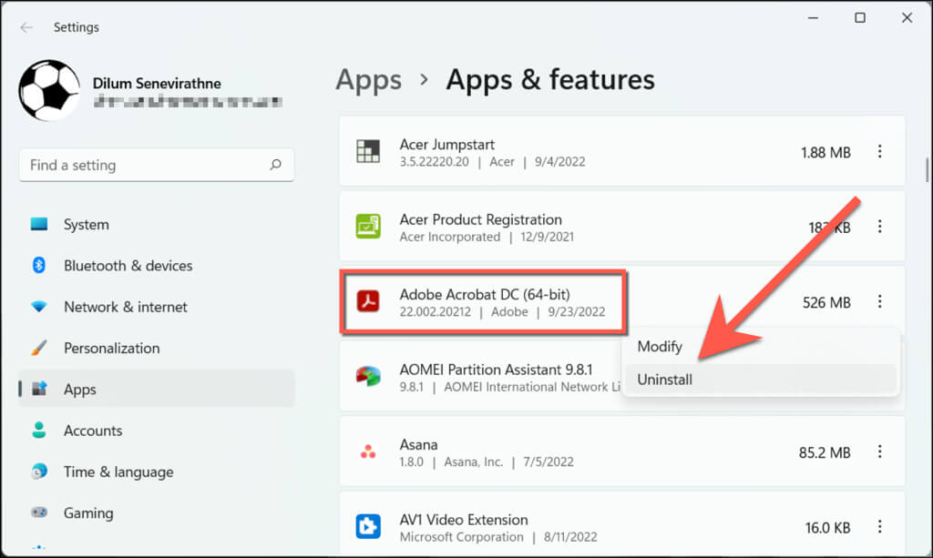 - Select Adobe Acrobat and choose Uninstall.