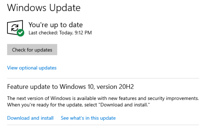 Open **Settings > Update & Security > Windows Update **and then click **Check for updates. **If there is a Windows update available, go ahead and download it. Despite the huge amount of bad press Windows updates tend to generate, they are necessary for the security of your computer.