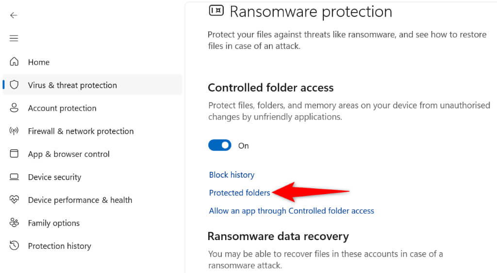 - Head into Windows Security > Virus & threat protection > Manage ransomware protection on your PC.