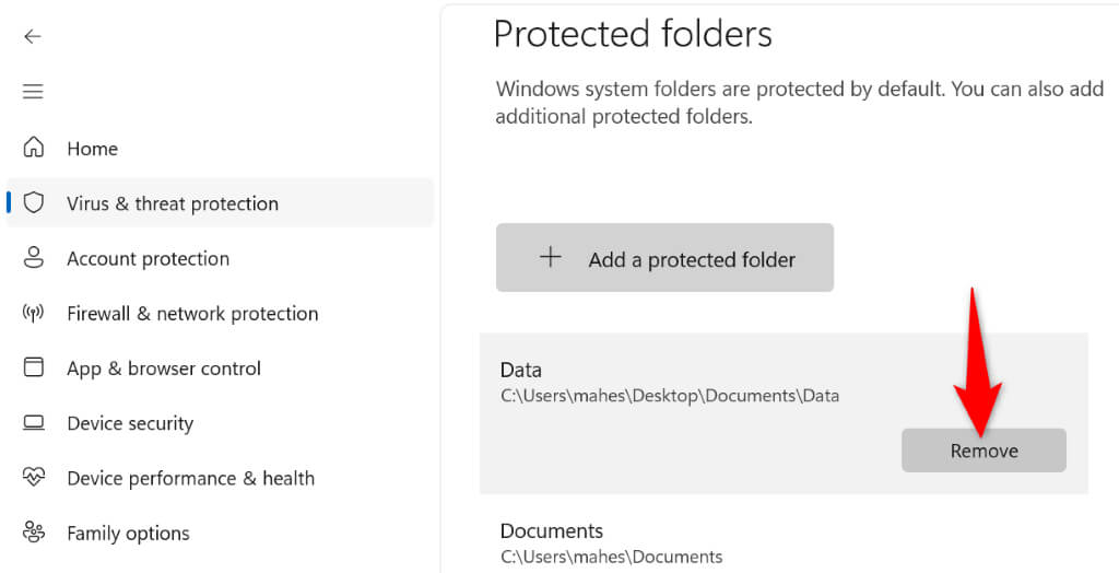 If you want to keep the feature enabled, you can remove your folder from the restricted list. This way, you can make changes to your folder while keeping Windows Security’s feature enabled.