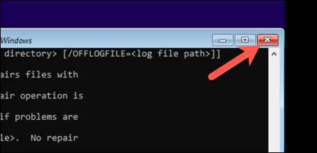 - SFC will check and attempt to repair any errors in your existing Windows installation. Once the process is complete, press the **Close** button in the top-right corner to close both the command prompt and Windows installation windows and restart your PC.