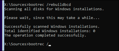 If you want to proceed, you’ll need Windows installation media on a USB drive or DVD first to be able to run this command on a drive that no longer boots.