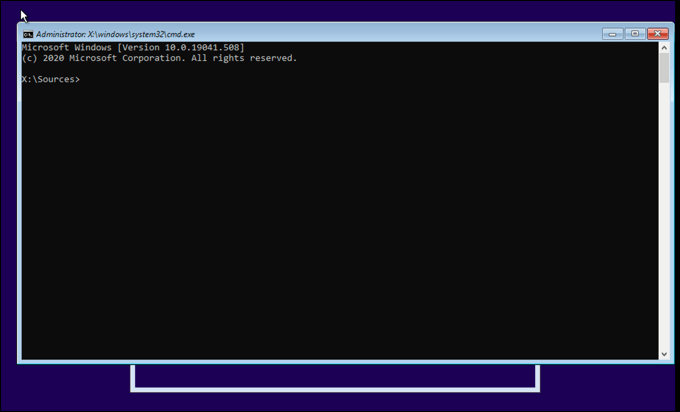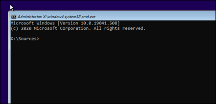 - To begin, insert your installation media and start your PC and change your boot order (using the steps above) to load the Windows installer. Once the installation menu appears, select the **Shift + F10 **keys to open a new command prompt window.