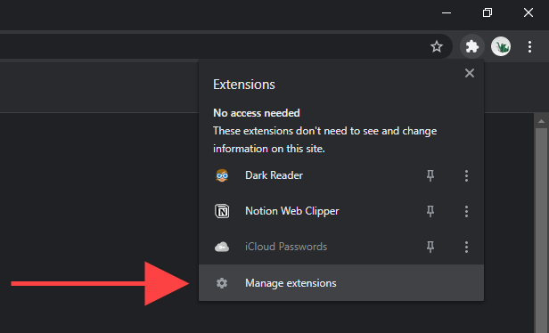 You can find out if that’s the reason behind the “Page Unresponsive” errors quite easily. Start by selecting the Extensions icon to the right side of the Chrome address bar. Then, select Manage Extensions and turn off all active extensions.
