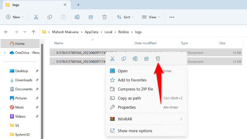 Roblox stores various files in its app logs. When you have issues using the app, it’s worth clearing these log files to potentially fix your issue. Clearing Roblox’s logs on Windows is as easy as deleting any other files.