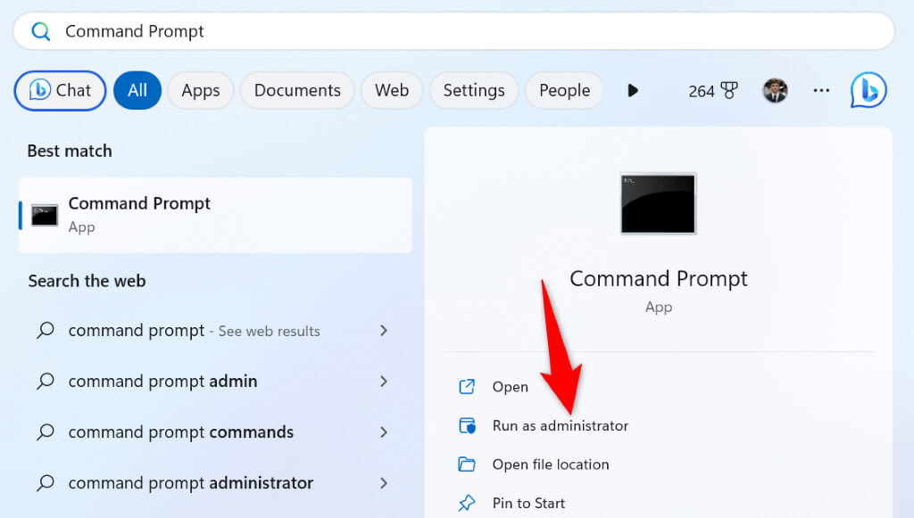 - Open the Start menu, find Command Prompt, and select Run as administrator.
