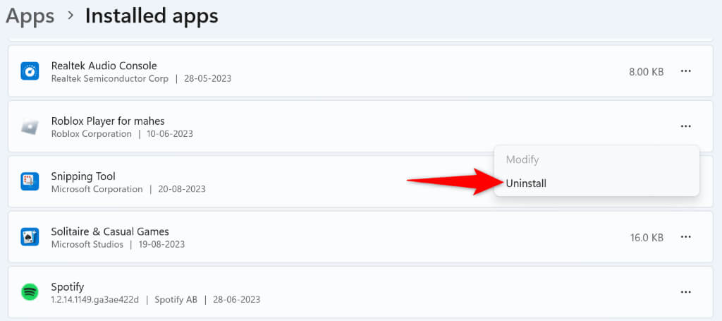 - Launch Settings by pressing Windows + I. * Select Apps in Settings. * Choose Roblox on the list and select Uninstall.