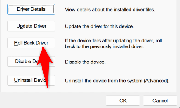 - Access the Driver tab and choose Roll Back Driver.