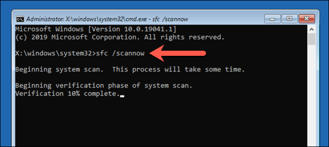 - Next, you can check the integrity of Windows system files by using the System File Checker tool. Type **sfc /scannow **to begin. This could take some time to complete.