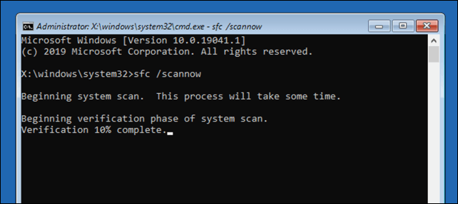 - When the DISM tool finishes running, reboot your PC and use the steps above to boot into a command-line window, repeating the **SFC **command (**sfc /scannow**) to ensure Windows is fully repaired.