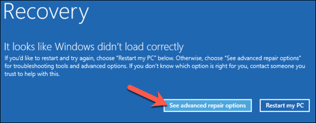 - To do this, restart your PC and press the F8 key on your keyboard before the Windows logo and spinning icon appears (you may need to repeat this step a few times). This should cause the Windows boot troubleshooting menu to appear. Select See advanced repair options to begin.