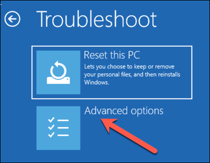 - In the **Troubleshoot **menu, select the **Advanced options** option.
