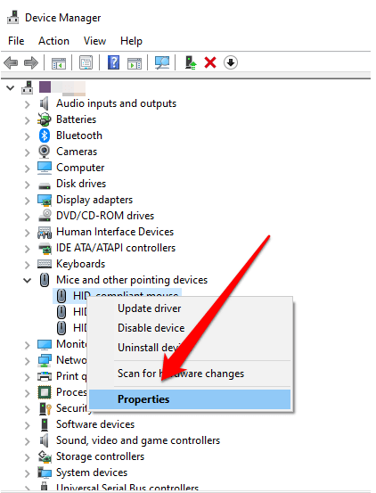 - Right-click the device, select **Properties.**