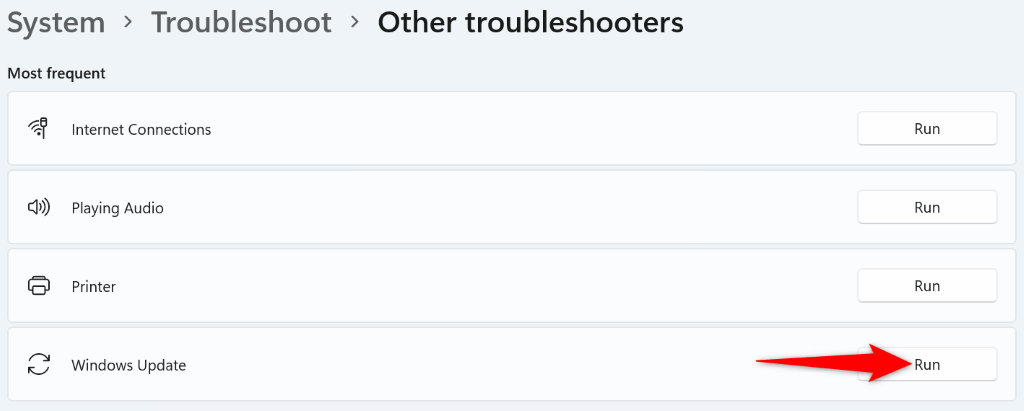 - Select Run next to Windows Update to launch your troubleshooter.