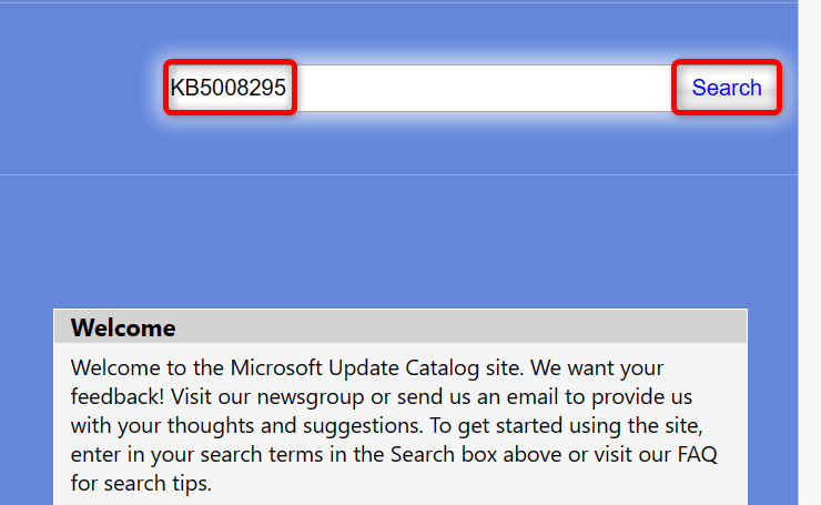 - Open a web browser on your PC and head to the Microsoft Update Catalog site.