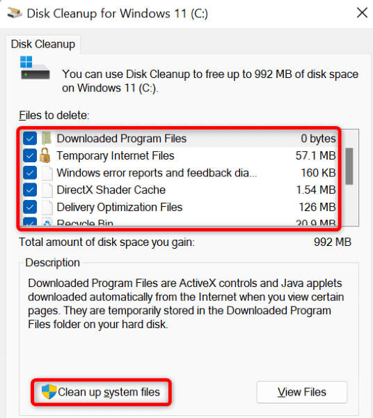 - Choose the files you’re willing to let go of and select Clean up system files.