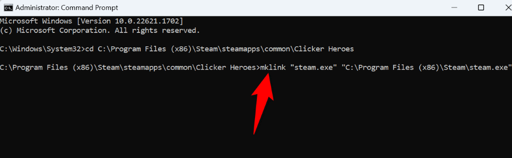 - Keep Command Prompt open and access the Start menu. Find Steam, right-click the app, and choose Open file location. * Right-click Steam again and choose Open file location. * Copy the folder path displayed in the address bar. * Return to Command Prompt, type the following command replacing PATH with the path you’ve copied, and press Enter. mklink “steam.exe” “PATHsteam.exe”