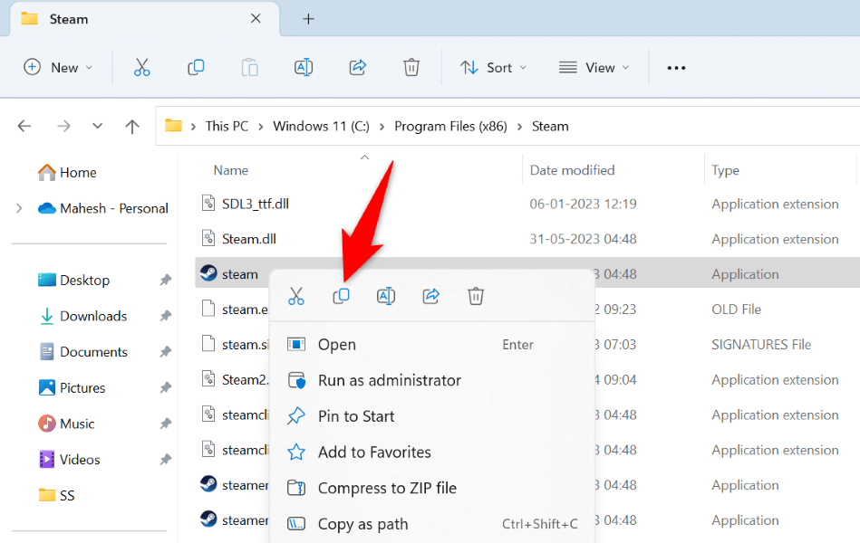 - Right-click Steam in File Explorer and choose Open file location to access the Steam folder. * Right-click steam.exe and choose Copy to copy the file.