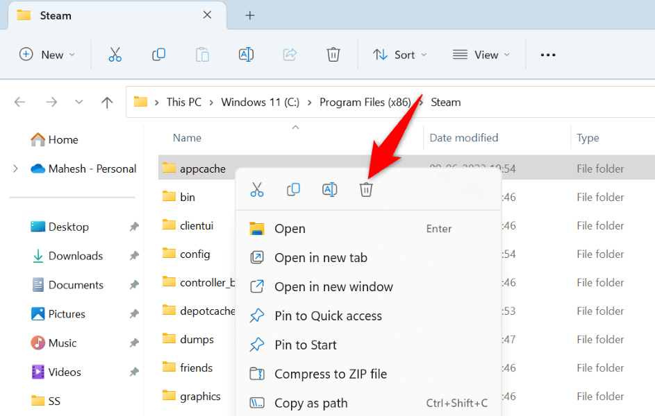 Delete Steam’s “appcache” Folder