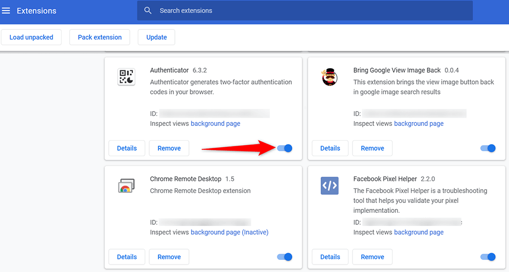 - You’ll see all your installed extensions. Here, turn off the toggle for the first extension to disable it.