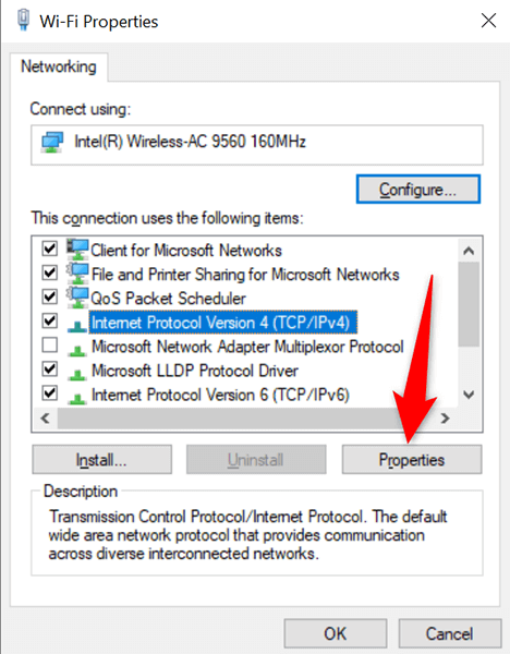 - Select **Internet Protocol Version 4** in the list and then choose **Properties**.