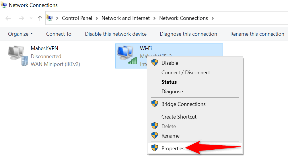 - Right-click your network adapter and select **Properties**.
