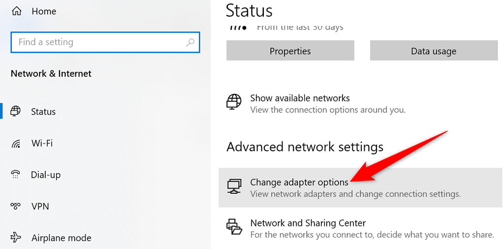 - Choose **Change adapter options**.