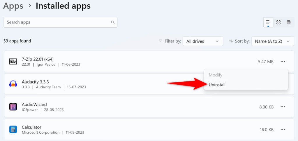 If your file copies without issues when you clean boot your system, remove any recently installed malicious apps from your PC. You can do that from Settings > Apps > Installed apps on Windows 11 and Settings > Apps on Windows 10.