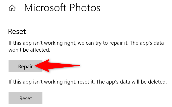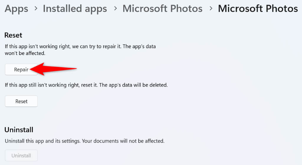 Sometimes, an app doesn’t launch because the app itself is faulty. In these cases, you can try to fix your app’s issues using Windows’ repair option. This built-in Windows feature allows you to repair broken apps on your computer.