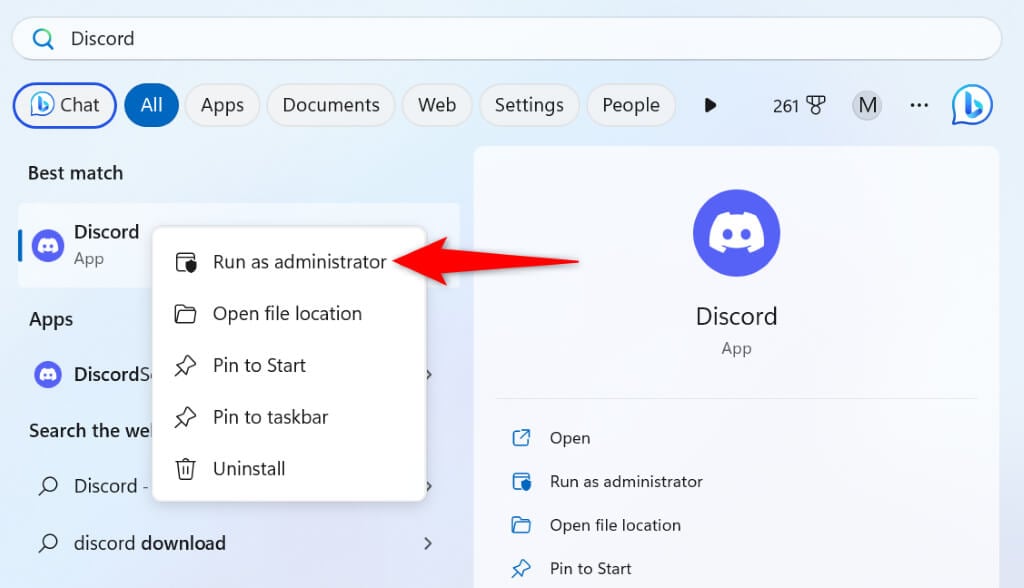 - Right-click the app and choose Run as administrator.