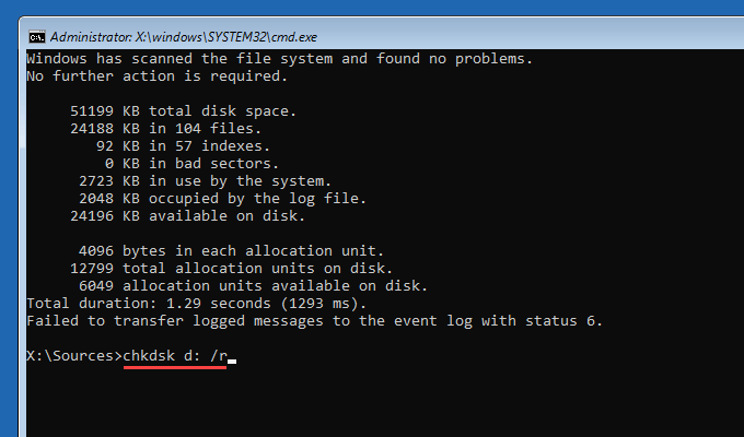 chkdsk d: /r