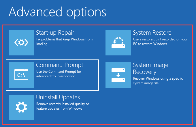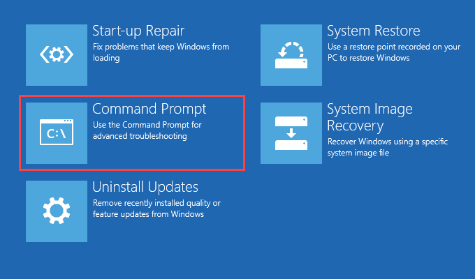 - Select Command Prompt in WinRE.
