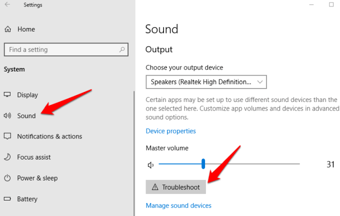 Windows audio troubleshooter can help automatically fix audio problems on your laptop. To do this, click Start > Settings > System > Sound and select Troubleshoot.
