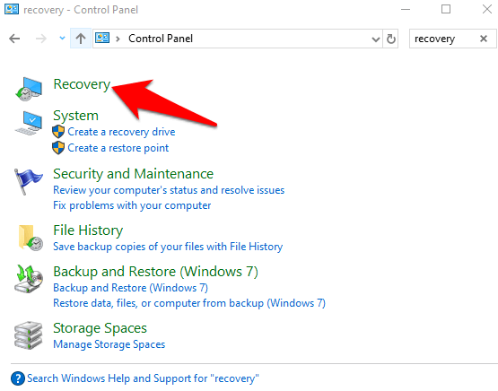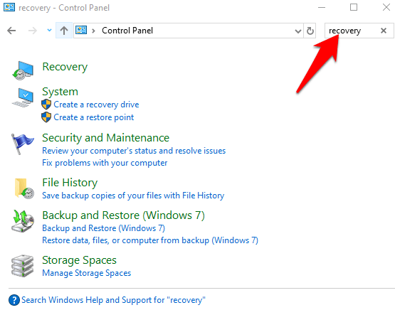 To do this, open the Control** Panel** and type Recovery in the search box.