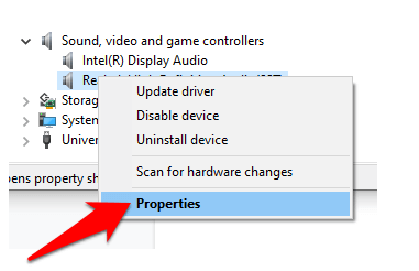 If the audio is still not working on your laptop using the solutions above, try rolling back the audio driver. To do this, right-click Start > Device Manager > Sound, video and game controllers and right-click your audio device or sound card. Select Properties.