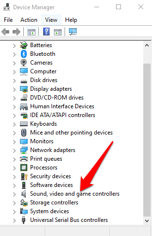 Expand the Sound, video and game controllers category.