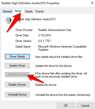 Roll Back Audio Driver