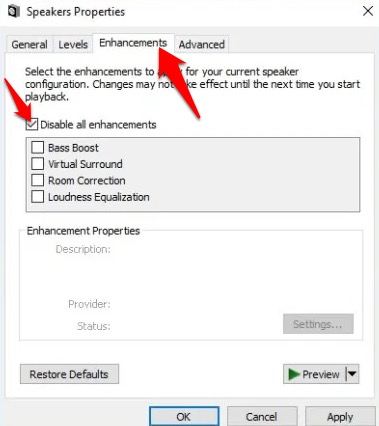 **Disable Audio Enhancements**