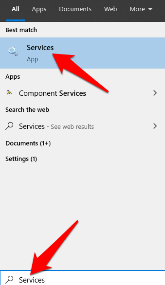 To do this, type **Services **on the search box and select **Services **from the search results.