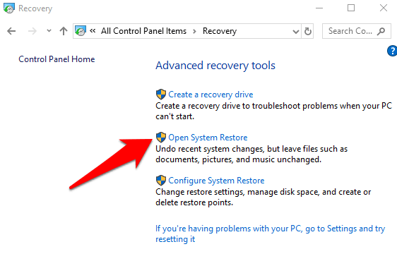 Next, click Open System Restore.