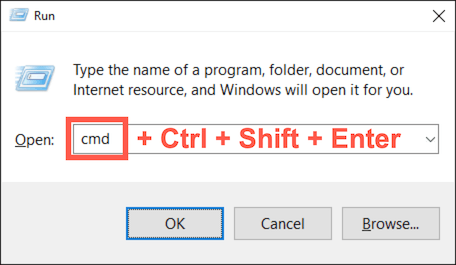Type cmd and press Control + Shift + Enter. That loads the Command Prompt with administrative privileges.
