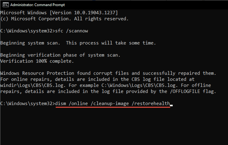 The DISM tool can take a significant amount of time to complete. Restart your computer afterward and check if Windows 10 starts rendering icons correctly again.