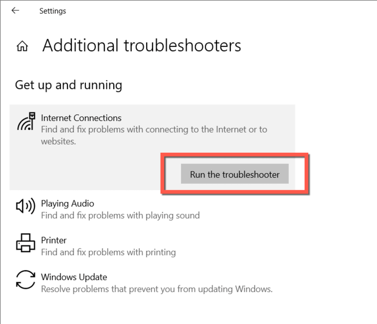 Windows comes with several network-related troubleshooters capable of running automatic diagnostics and fixes. To get to them:
