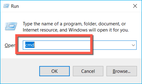 - Right-click the Start button and select Run. Then, type cmd and press Ctrl + Shift + Enter to open an elevated Command Prompt window.