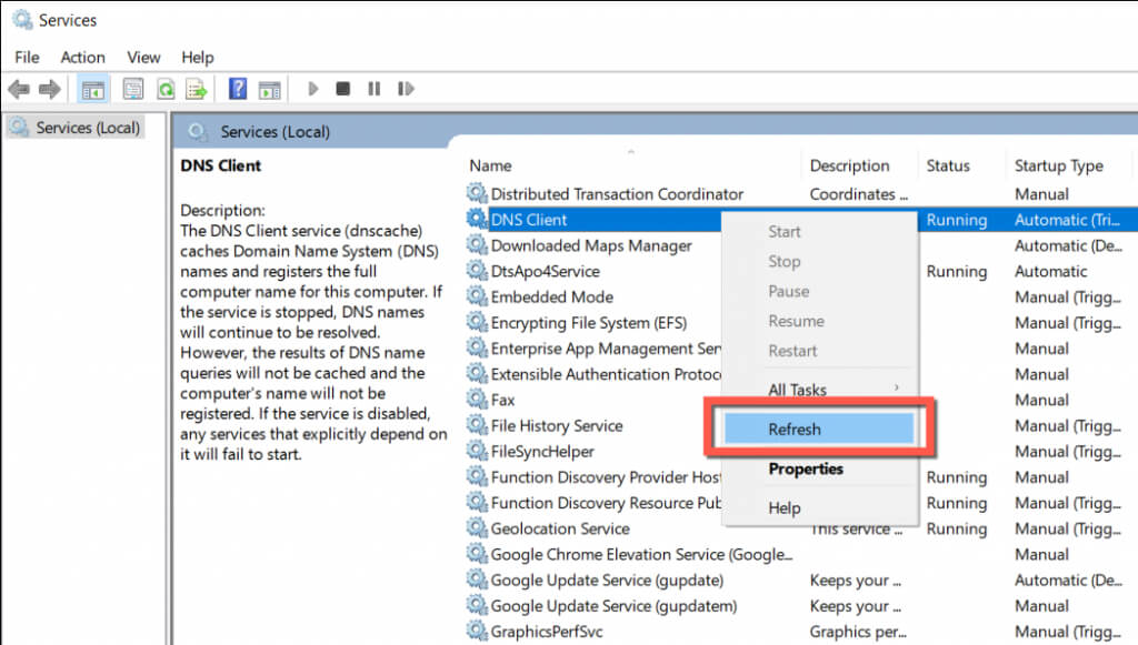 Windows uses a background service called “DNS Client” to handle DNS activity on your computer. Refreshing it works as a quick fix for DNS-related issues.
