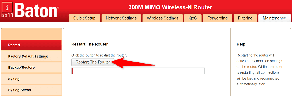 One way to restart most routers is to access your device’s web page in your web browser, open the Maintenance or similar tab, and choose Restart The Router.