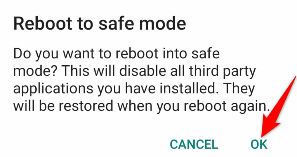 - Select **OK** in the prompt to reboot your phone in safe mode.