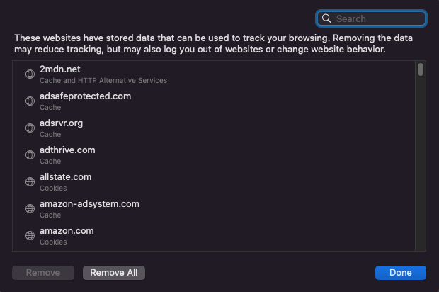- Scroll down to the Cookies and Site Data header and select Clear Data…
